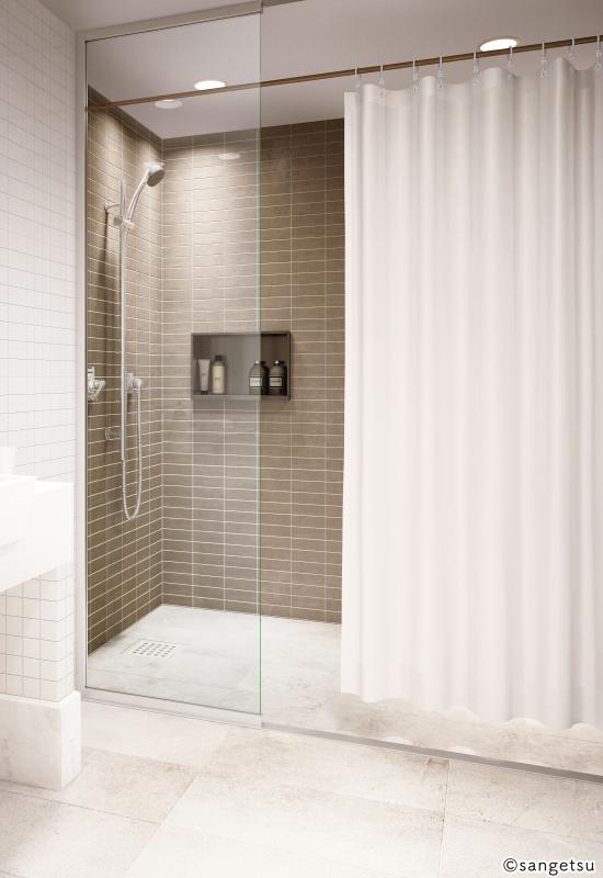 やさしいカラー展開のシャワーカーテン。