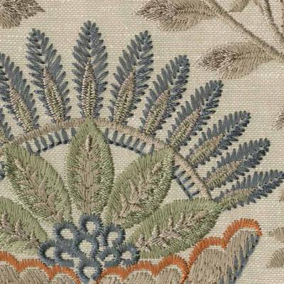 天然繊維混のナチュラルなベースに更紗柄を刺繍。 エスニック感のあるカラーが、ムードを高めます。