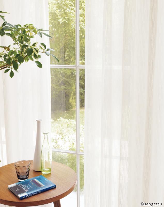 ナチュラルテイストのストライプ調レース。花粉キャッチ・遮熱・UV カットの効果があります。