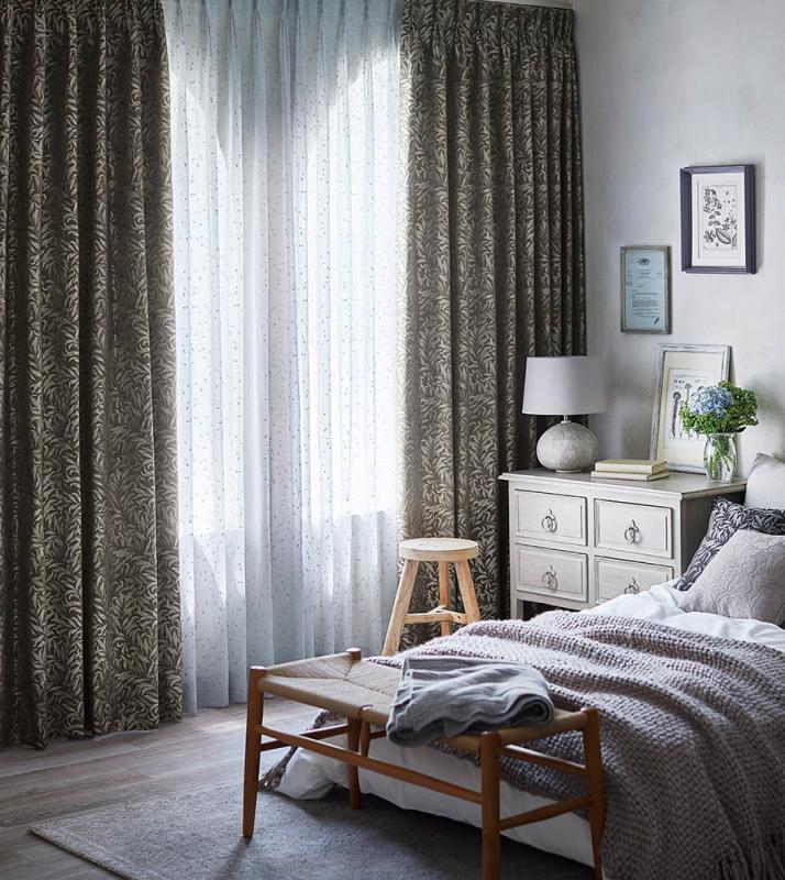織物ならではの端正な表情はそのままに、柄や色、織り方にアレンジを加え、遮光2級を実現しました。