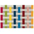 グレーのラインとカラフルなラインが網目状に交差するラグ。