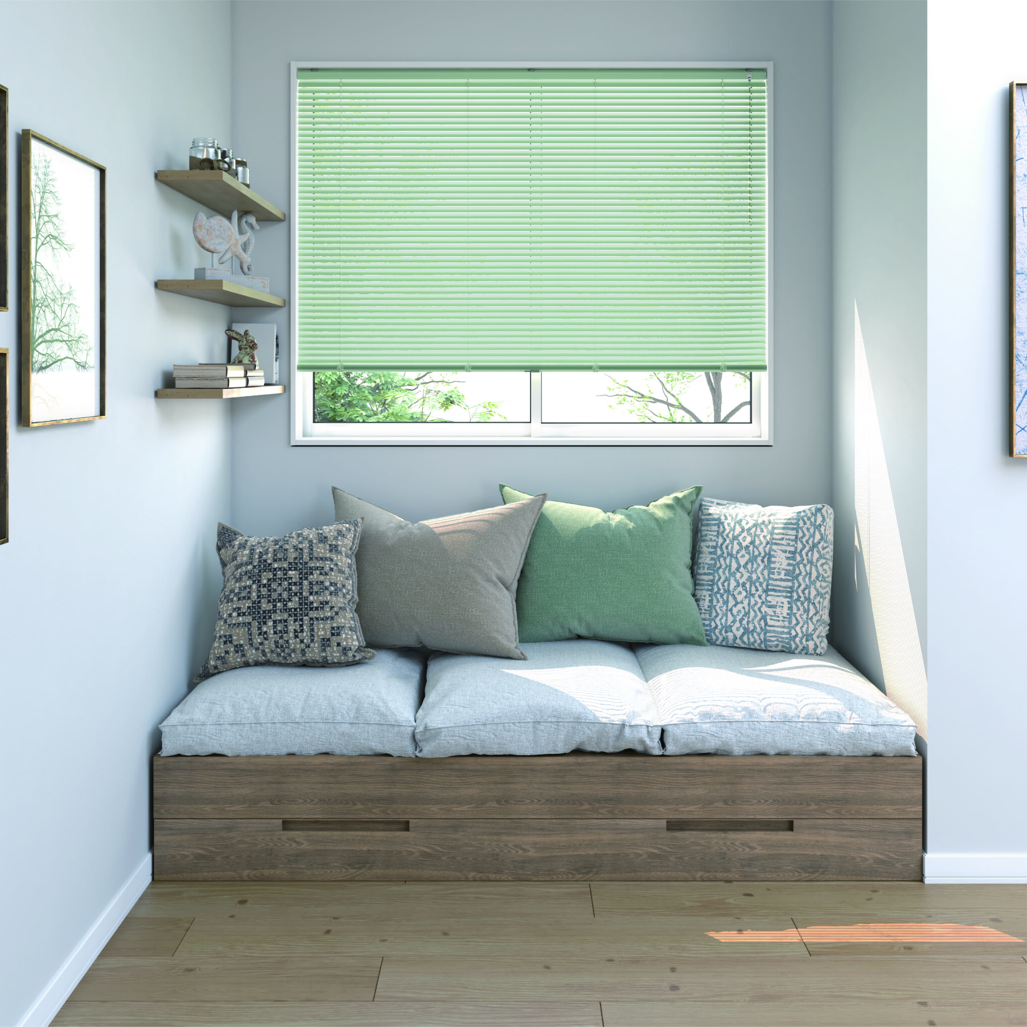 スラットの開閉、昇降により、プライバシーを守りつつ、光をコントロールすることができます。
