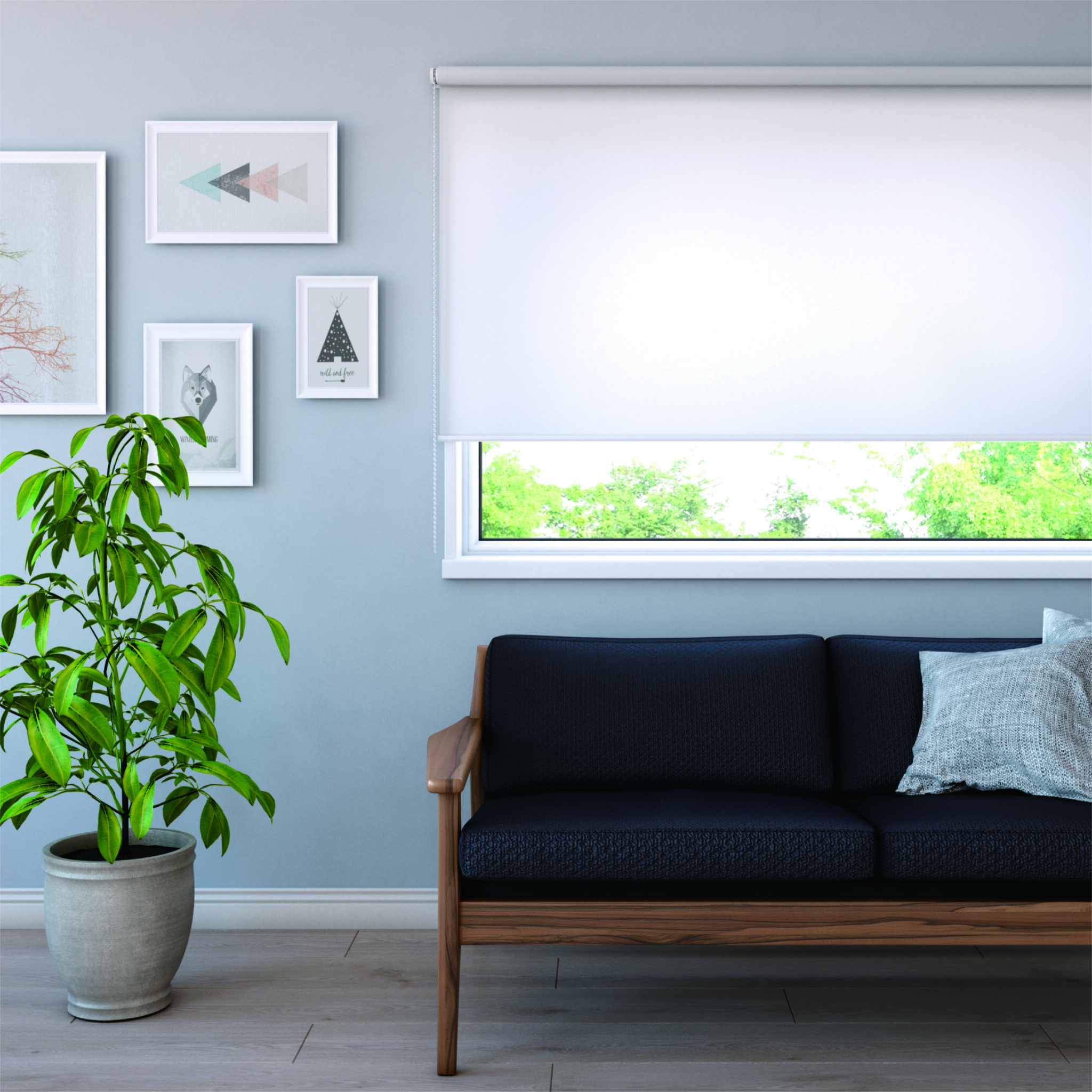 生地の風合いを生かし、部屋全体をすっきりと広く見せてくれるロールスクリーン。